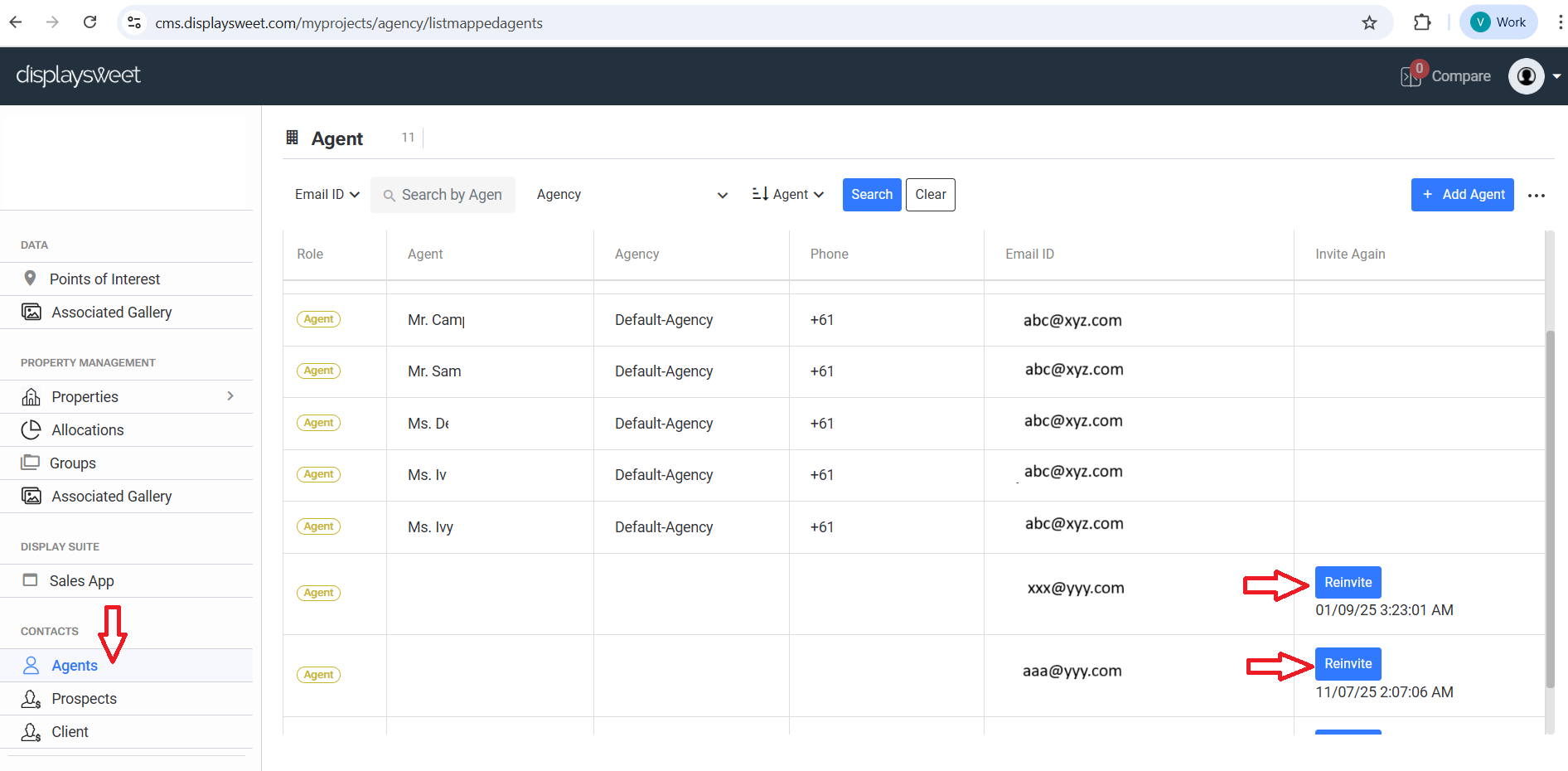 - Initiate Re-invitation: Within the agent's profile or details, there will be an option labelled "Reinvite." Click this button.